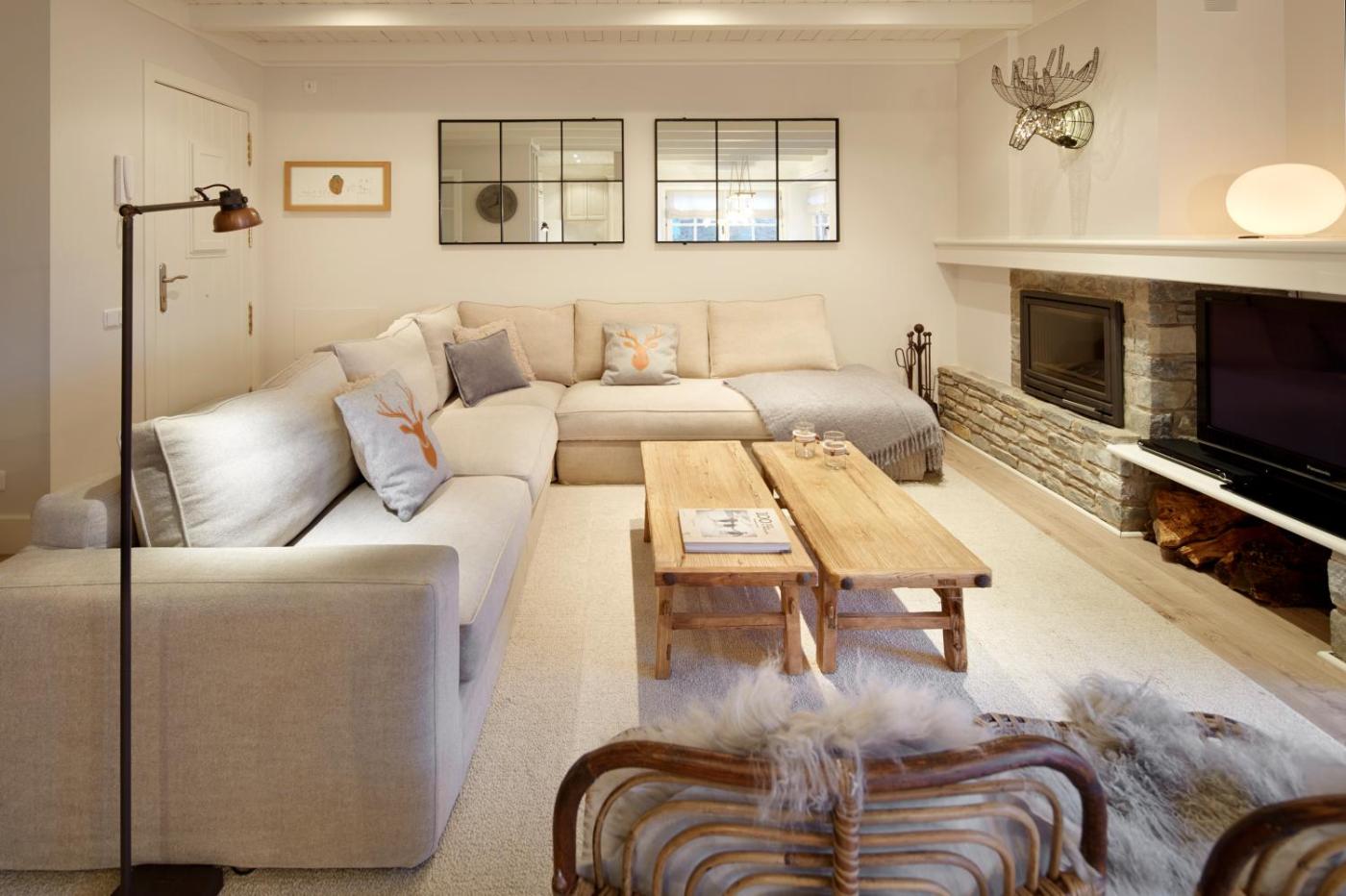 Three-Bedroom Apartment. This apartment offers a fireplace. Featuring a private entrance, this spacious apartment also comprises 3 bedrooms, a seating area and 2 bathrooms with a bath and a shower. In the well-fitted kitchen, guests will find a stovetop, a refrigerator, a dishwasher and kitchenware. Boasting a balcony with mountain views, this apartment also provides a washing machine and a flat-screen TV. The unit offers 5 beds.