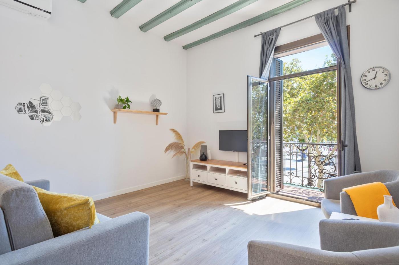 Deluxe One-Bedroom Apartment - Psg Colom Street 3. Located in Passeig Colom, 3, Barcelona. This 1-bedroom apartment includes a small balcony and a seating area with sofa and TV. It also comes with free Wi-Fi, a private bathroom and a fully-equipped kitchenette.