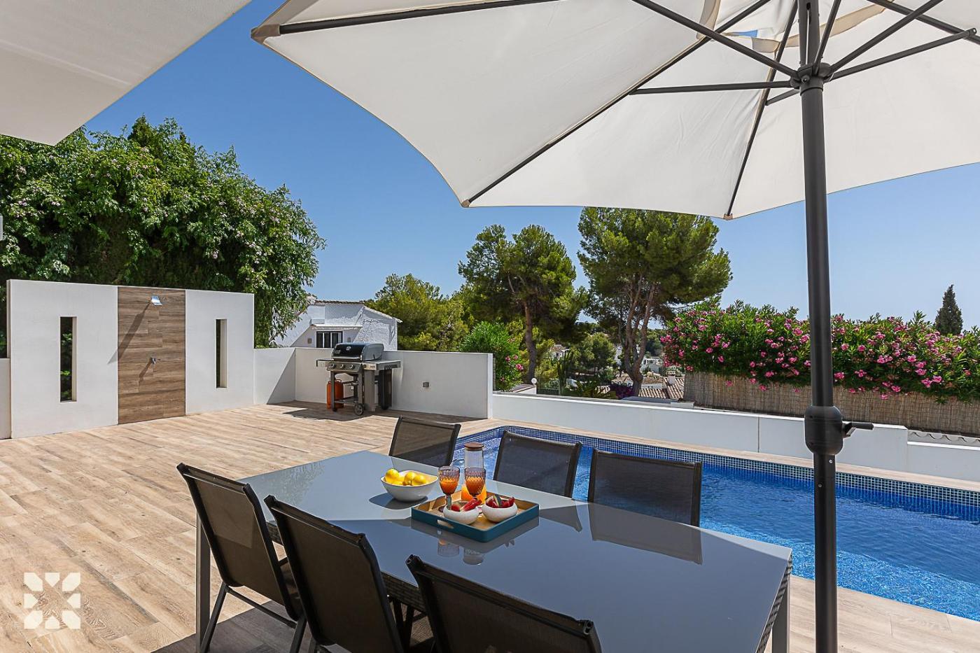 Villa with Private Pool. This villas standout feature is the private pool. This spacious villa includes 4 bedrooms, kitchen, a terrace and 3 bathrooms with a shower. In the fully equipped kitchen, guests will find a refrigerator, a dishwasher, kitchenware and an oven. The air-conditioned villa offers a TV with satellite channels, a washing machine, a tea and coffee maker, a barbecue as well as sea views. The unit has 5 beds.