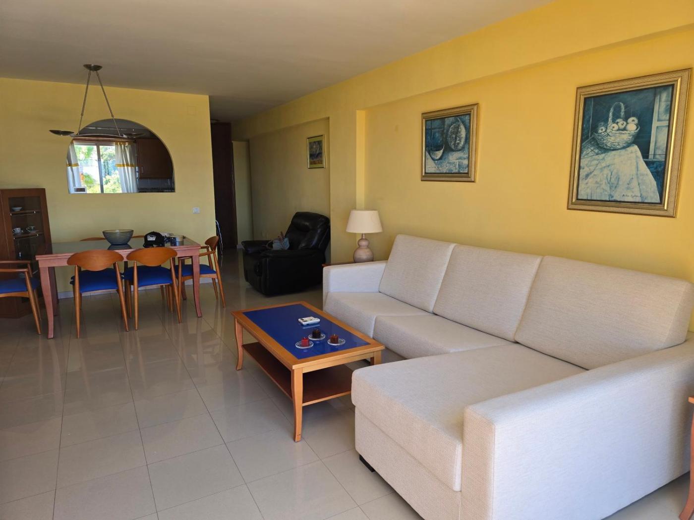 The spacious apartment with a terrace and sea views has 2 bedrooms, a living room, a flat-screen TV, an equipped kitchen with a dishwasher and a microwave, and 2 bathrooms with a bidet. Towels and bed linen are offered in the apartment. The property offers pool views.