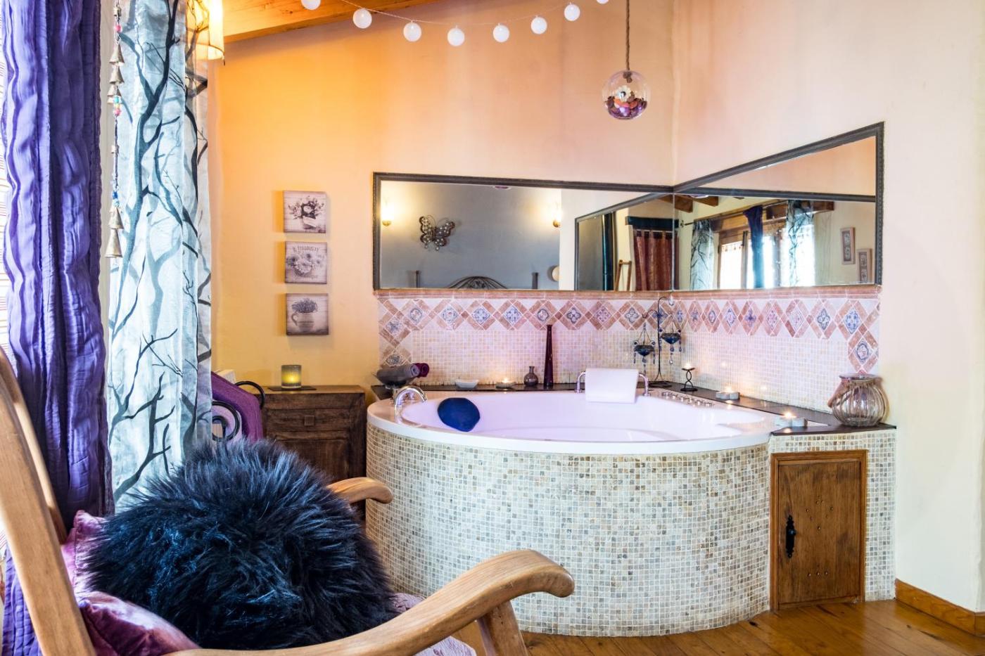 Double Room with Mountain View. The hot tub and fireplace are the special features of this double room. Providing free toiletries, this double room includes a private bathroom with a bath, a shower and a hairdryer. Guests will find a dishwasher, kitchenware, an oven and a microwave in the well-equipped kitchen. The double room also provides guests with a barbecue. The spacious double room provides a TV with streaming services, a washing machine, a private entrance, a coffee machine as well as garden views. The unit offers 1 bed.