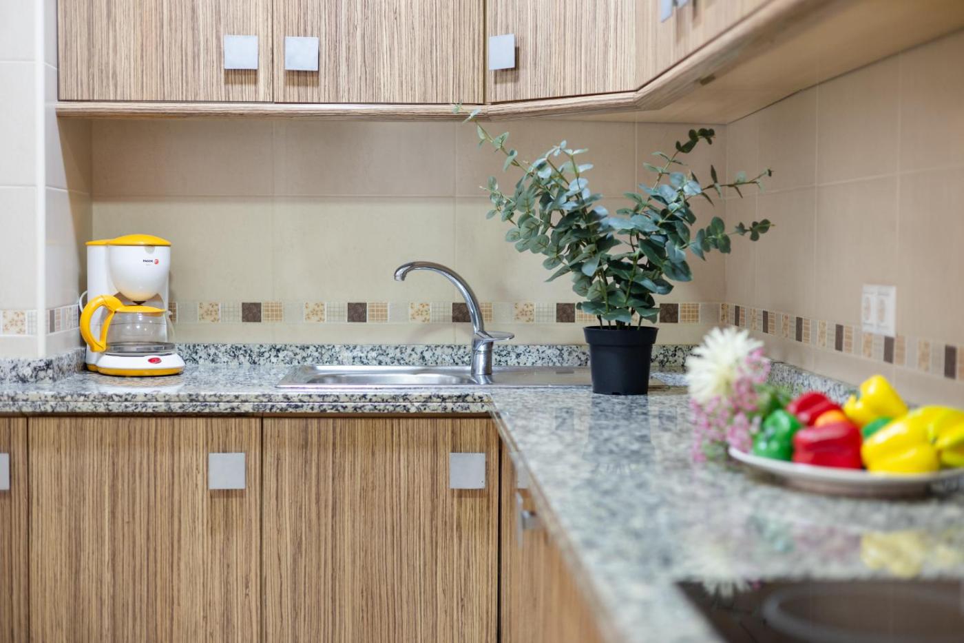 The accommodation comes with a TV and a private bathroom with shower and a hair dryer, while the kitchen features an oven, a microwave and a toaster. A fridge and kitchenware are also provided, as well as a coffee machine and a kettle. At the apartment complex, each unit is equipped with bed linen and towels.