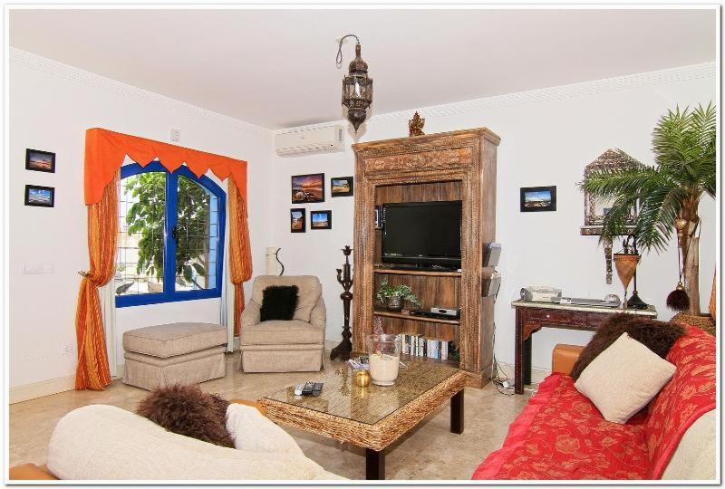 Boasting a DVD player, the villa has a fully equipped kitchen with a dishwasher, an oven and a microwave, a living room with a seating area and a dining area, 3 bedrooms, and 3 bathrooms with a hot tub and a bidet. The unit is air conditioned and is comprised of a terrace with an outdoor dining area as well as a flat-screen TV with satellite channels. Additional in-room amenities include wine or champagne.
