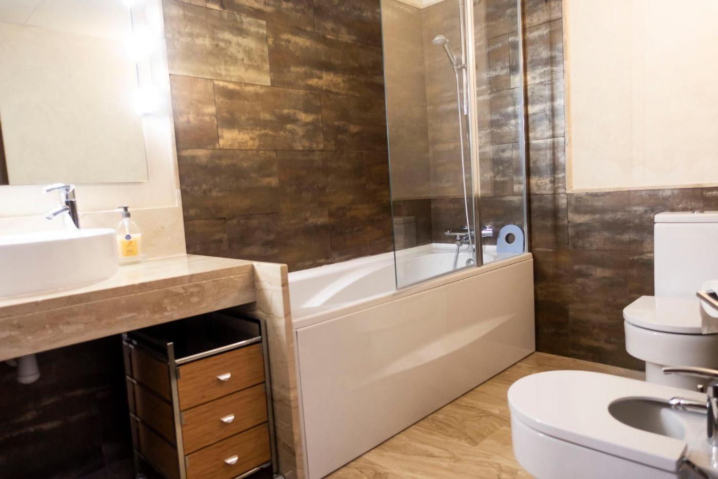 The spacious apartment with a terrace and mountain views has 3 bedrooms, a living room, a flat-screen TV, an equipped kitchen with a dishwasher and an oven, and 2 bathrooms with a bidet. Towels and bed linen are offered in the apartment. The property has an outdoor dining area.