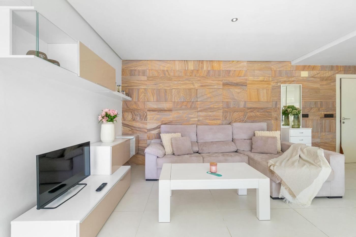 Apartment with Terrace. This spacious apartment consists of 3 bedrooms, kitchen, a terrace and 2 bathrooms with a shower. The well-equipped kitchen has a refrigerator, a dishwasher, kitchenware and an oven. This apartment is air-conditioned and features a TV, a washing machine and a tea and coffee maker. The unit offers 5 beds.
