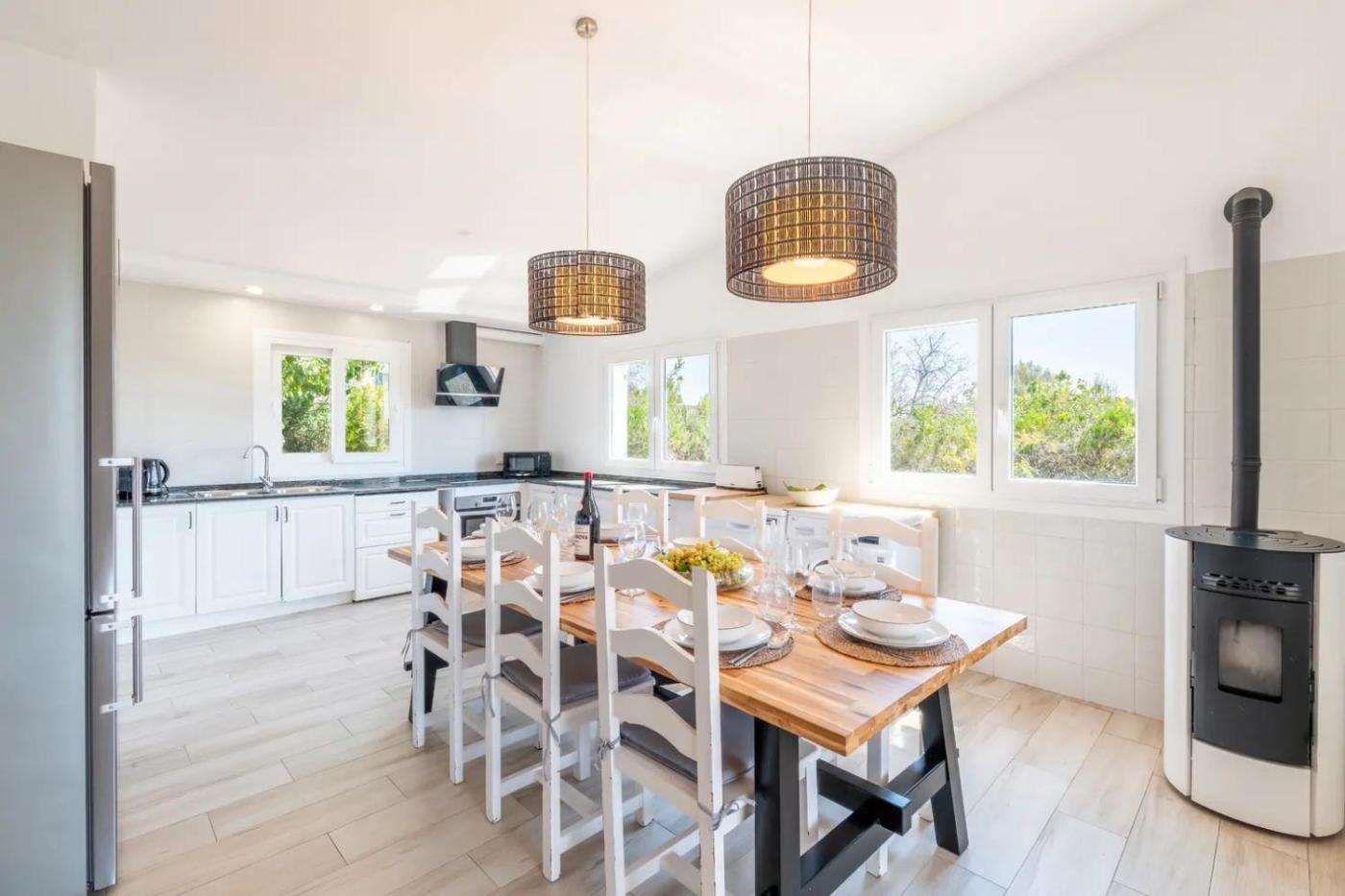 Villa. The pool with a view and fireplace are the special features of this villa. Boasting a private entrance, this air-conditioned villa comes with a kitchen, 4 bedrooms and 2 bathrooms with a walk-in shower and a hairdryer. Guests will find a stovetop, a refrigerator, a dishwasher and kitchenware in the kitchen. The villa also includes a barbecue. Featuring a terrace with garden views, this villa also features a washing machine and a flat-screen TV with streaming services. The unit has 5 beds.