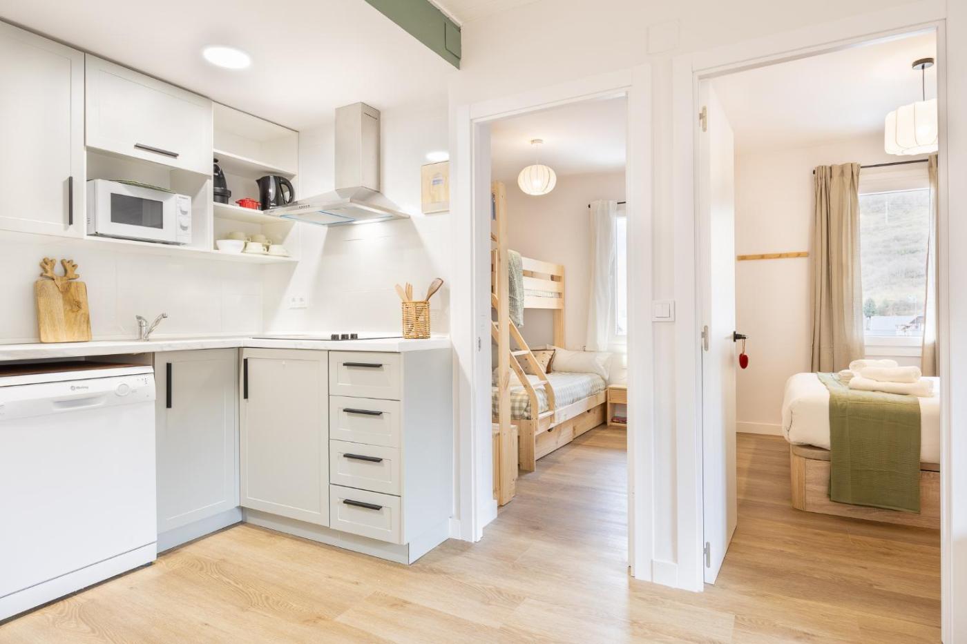 Two-Bedroom Apartment. This spacious apartment consists of 1 living room, 2 separate bedrooms and 1 bathroom with a shower and a hairdryer. Meals can be prepared in the well-fitted kitchen, which is equipped with a refrigerator, a dishwasher, a microwave and a toaster. Featuring a balcony with mountain views, this apartment also provides a washing machine and a flat-screen TV. The unit offers 3 beds.